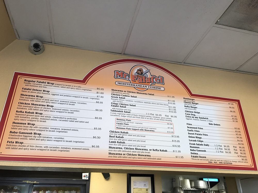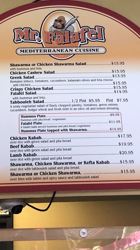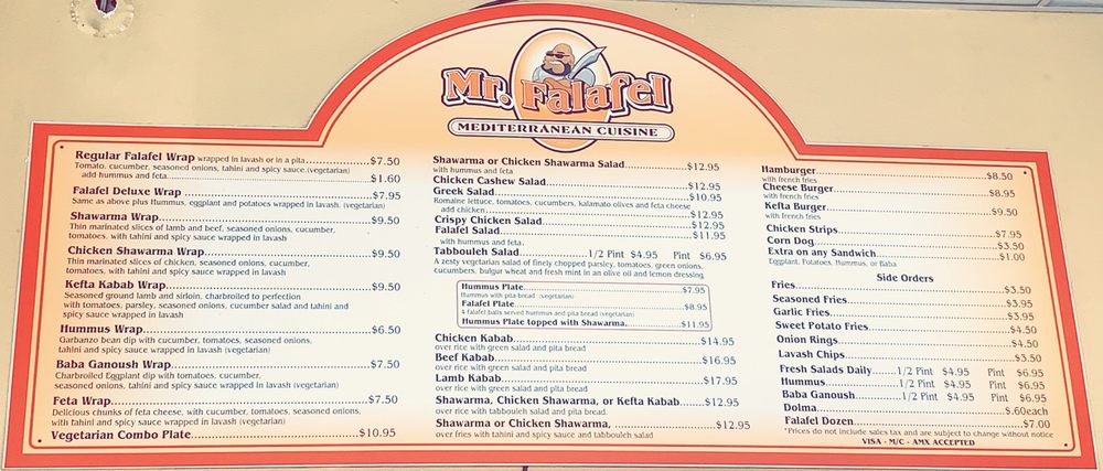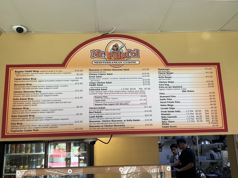 Introducing the menu at Mr. Falafel, a gem in Morgan Hill offering a variety of vegetarian and meat options. Start with the Shawarma Salad, Chicken Cashew Salad, or the flavorful Falafel Salad. Enjoy wraps like the Falafel Deluxe Wrap or the Chicken Shawarma Wrap, packed with fresh ingredients and tasty sauces. For a hearty meal, try the Vegetarian Combo Plate or the Shawarma Over rice. Customers rave about the friendly staff, fresh food, and generous portions. With options for vegan, gluten-free, and spicy lovers, Mr. Falafel is a must-visit spot for delicious and wholesome Mediterranean cuisine. Don't miss out on their famous garlic fries and welcoming atmosphere.